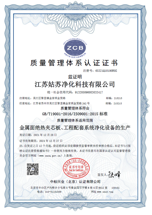 環(huán)境管理體系認(rèn)證證書